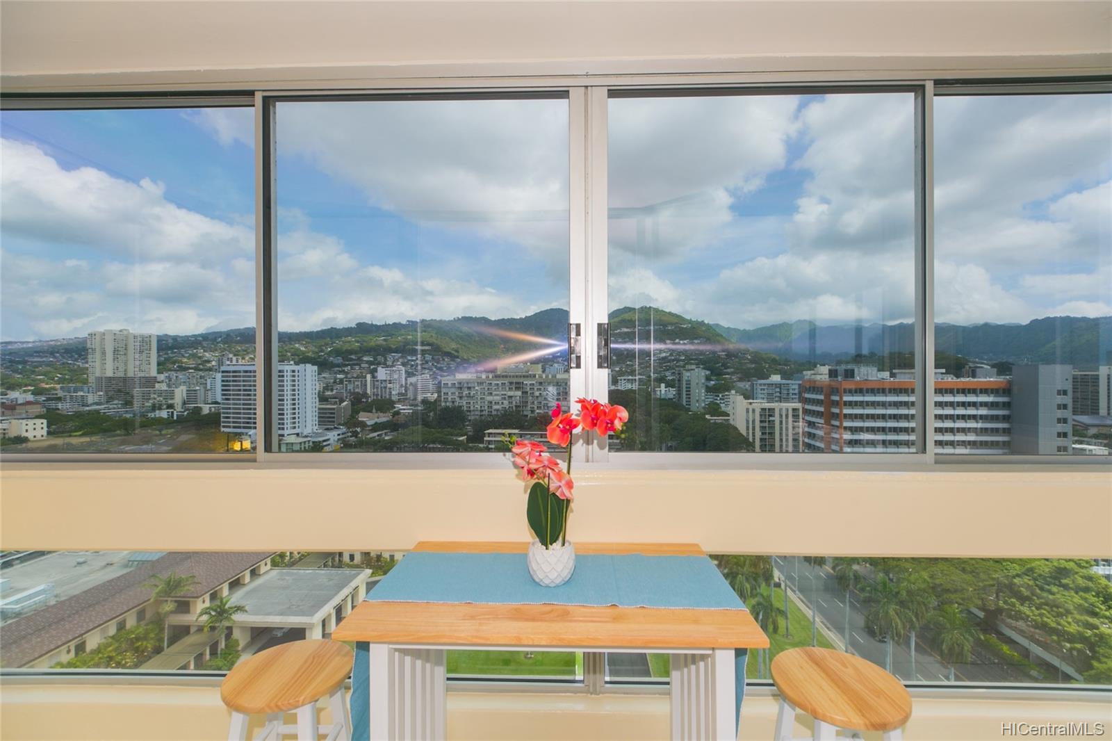If you are looking for a spacious, 2 bedroom/2 bathroom condo in Honolulu with great views that is affordably priced…then this Banyan Tree Plaza unit #1806 is for you. With over 1500sf of interior space (both lanais are enclosed) and windows on three sides to experience the beautiful mountain, city, Diamond Head and read more sunrise views, you will find the floorplan both spacious and free flowing. Freshly painted and with new vinyl plank flooring throughout, this unit is move-in ready or available to update to your liking. The unit comes with an in-unit full size washer and dryer and lots of closet storage space. The Banyan Tree Plaza is a well-maintained building in an excellent location convenient to all that Honolulu has to offer – Within 2 miles there are beaches, schools, grocery stores, shopping centers, numerous restaurants, hospitals, freeway access points, bus stops and public bike rentals. The building has FOB entry, 24/7 security staff and video surveillance, a new heated swimming pool, 20 guest parking stalls, meeting/party room, resident manager, secure-gated garage parking, ping pong table, surfboard storage, bicycle racks and car wash area. Sold “AS-IS”.