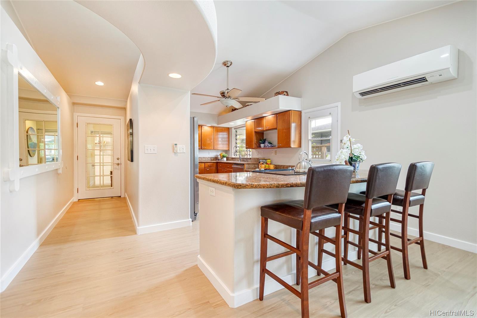 Fantastic street appeal on this great Kailua double-wall single level home w/ 4 bdrms 2 newly renovated bathrms & a bonus half bath/laundry room. PLUS an attached 1/1 (with its own laundry) – currently configured as a hair salon + studio. This home has been lovingly renovated through the years with new read more LVP laminate flooring, fresh paint, plantation shutters, breezeway windows, french doors, new ceiling fans, lighting and much, much more. Nice entry foyer that goes to each unit…. Excellent home office option, in-law suite or other. Very nicely landscaped w/lots of unique plants & a fruit bearing Kalamansi tree! Attached carport & lots of storage throughout… Great lanai off the back yard for the Tiki bar experience (with bathroom!) Upgraded 200 amp electrical service, solar water heating, new roof in 2016, 35 owned PV panels & split AC’s are a few of the great features. Plus a deeded 1/3 interest in adjacent driveway for drive in access to the back yard (boat?)… Auwai Street is one of Coconut Grove's nice, wider streets with close proximity to Kailua town and Kailua’s famous white sand beaches! A definite must see if you’re thinking about Kailua…